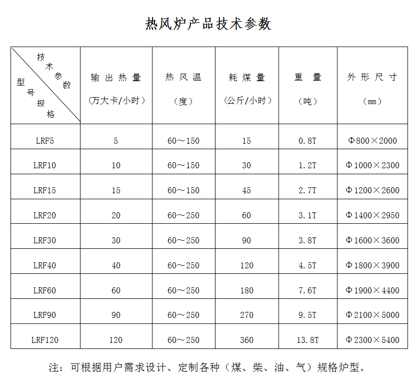 注:可根據(jù)用戶需求設(shè)計、定制各種(煤、柴、油、氣)規(guī)格爐型。